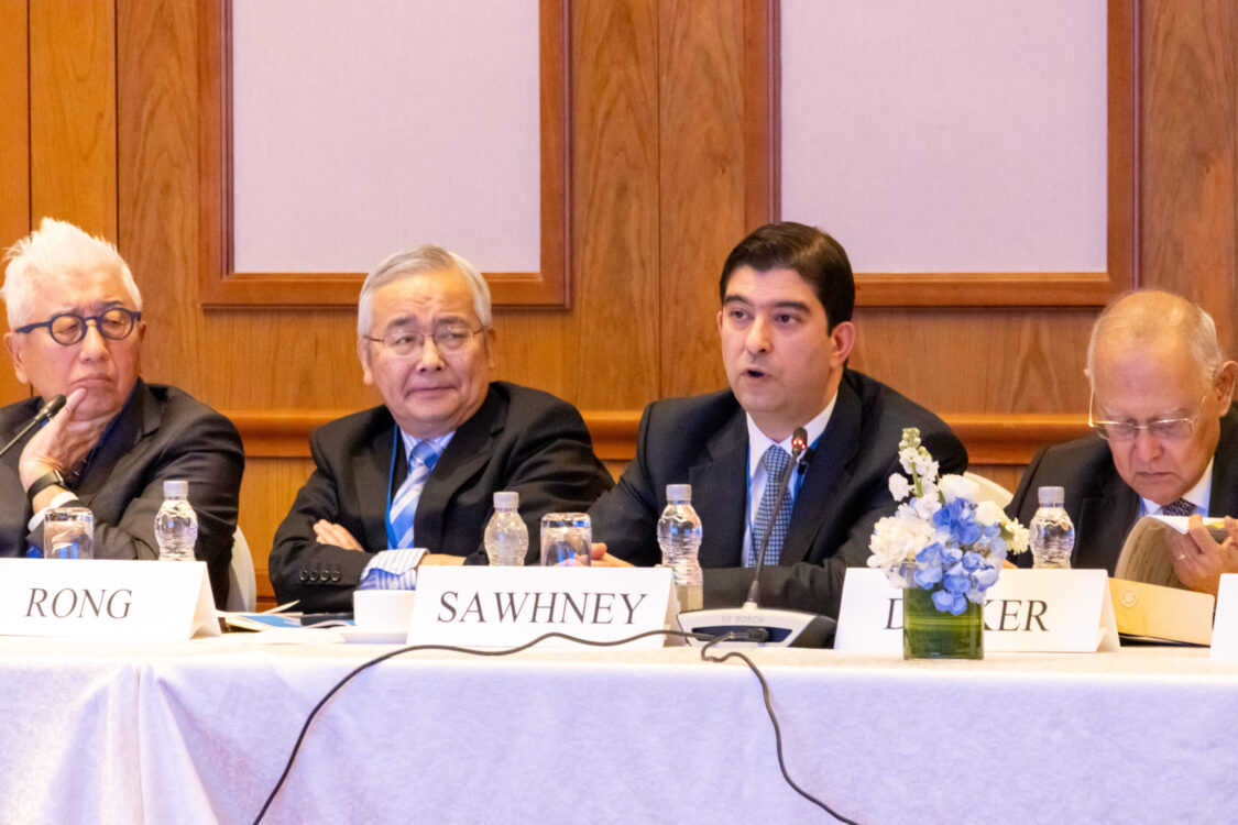 初日の第一セッションでは、「再編される世界秩序とアジア太平洋の戦略的課題」をテーマに、世界的な緊張の高まりの中で、アジアがより主体的に秩序形成に関与する必要性が論じられました。